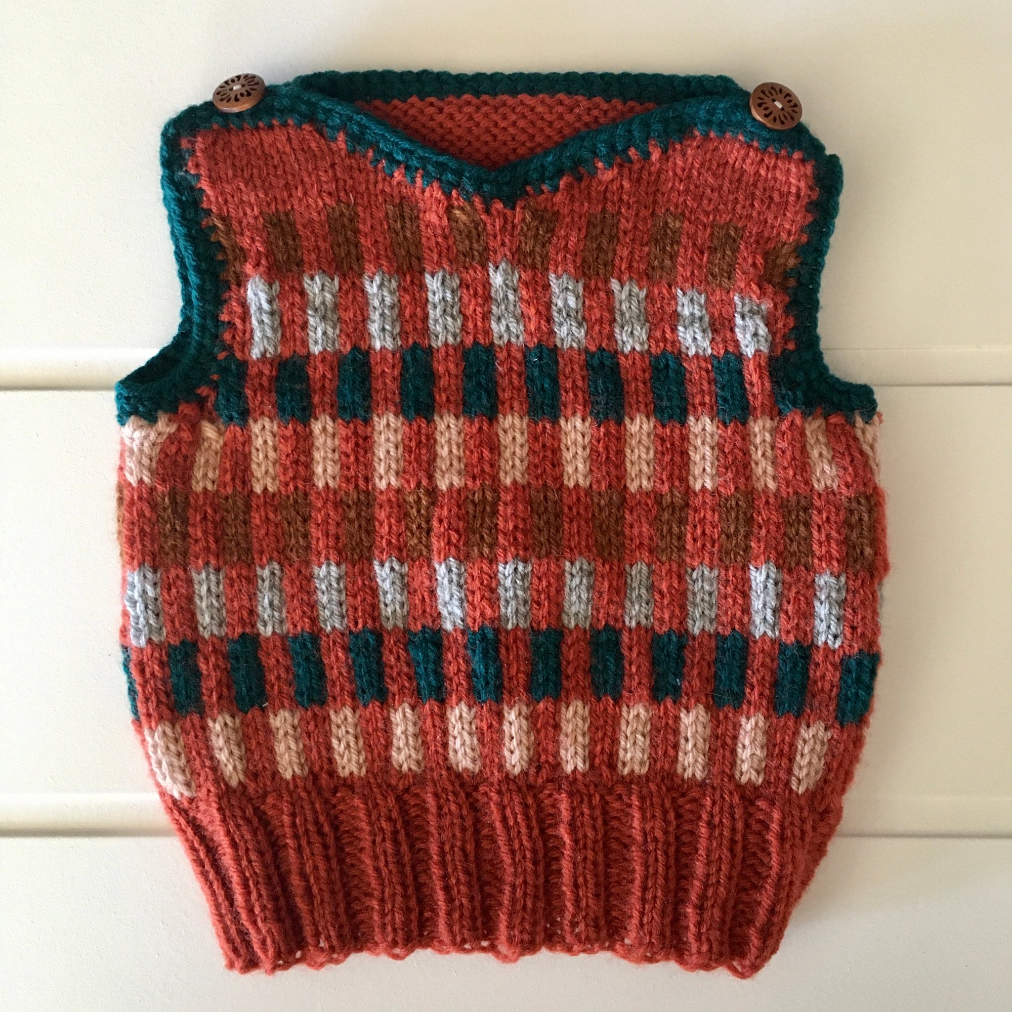Hand knit wool blend vest in a fun little pattern.