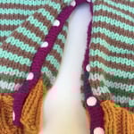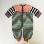 This hand Knit romper features a wide body for ease of movement, A full button front for easy on and off, And a full set of snaps for diaper changes!