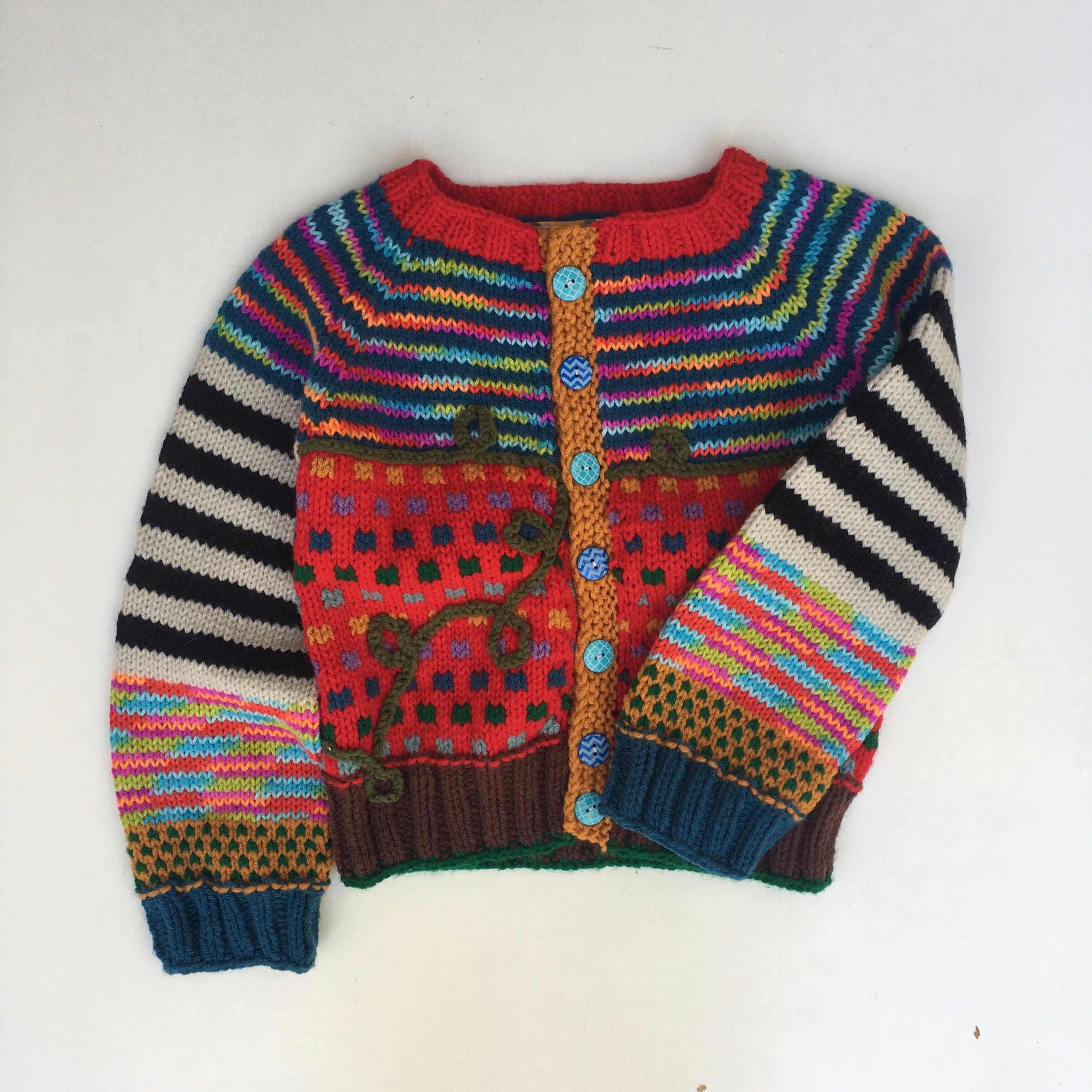 Hand Knit one of a kind colourful cardigan. Pair with absolutely anything to transform your outfit into absolute fun!