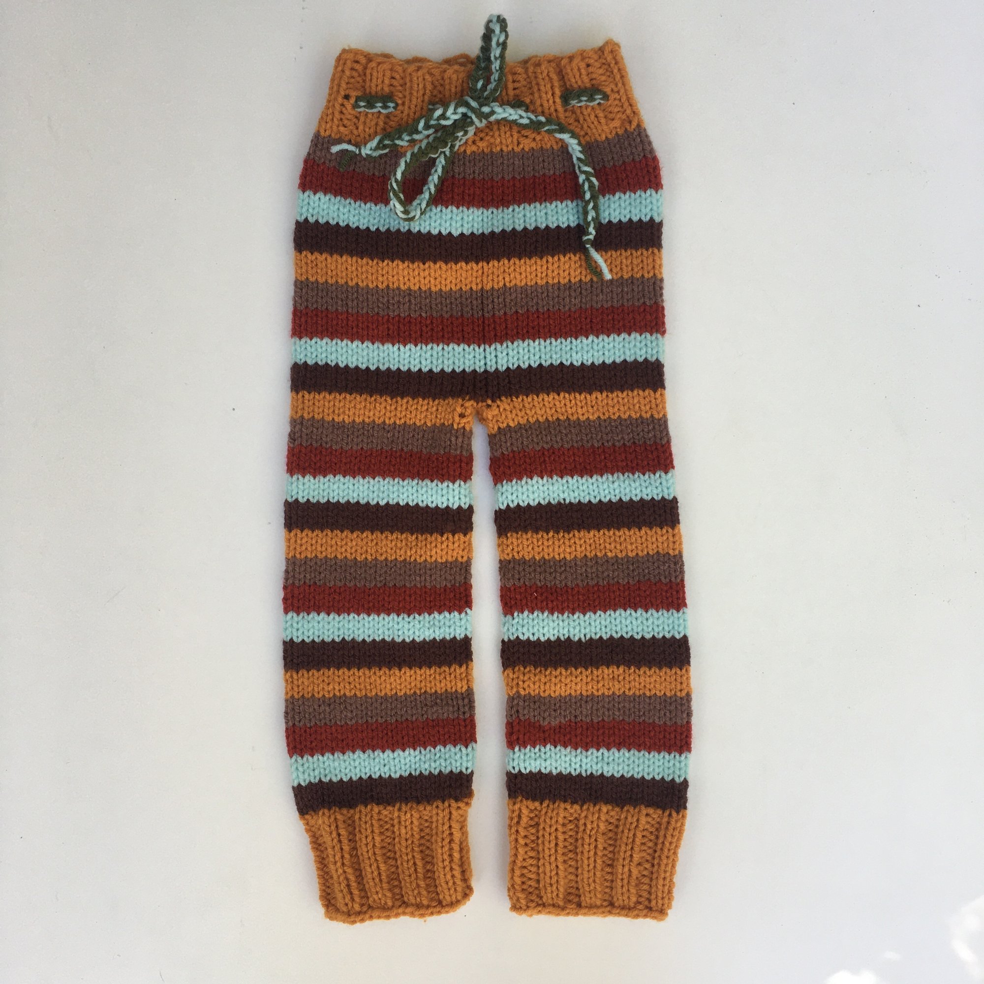 This pair of hand knit pants is a slimmer fit. Can be cuffed to shorten, or to show off super cool socks!