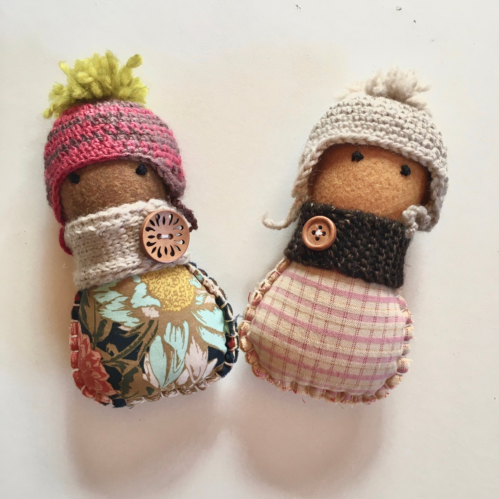 Each peanut is made with a full felt body, Cotton jammies, Wool hats and scarves.